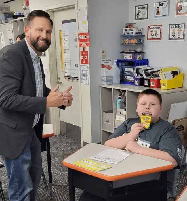 Patrick Booth, CEO of CCB Technology, paid a special visit to our Easterseals Academy Chicago Campus in October 2023 to distribute school supplies to students!